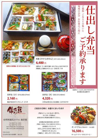 日帰り旅行の ご一行さまに 通年でお作りしているお料理の一例です